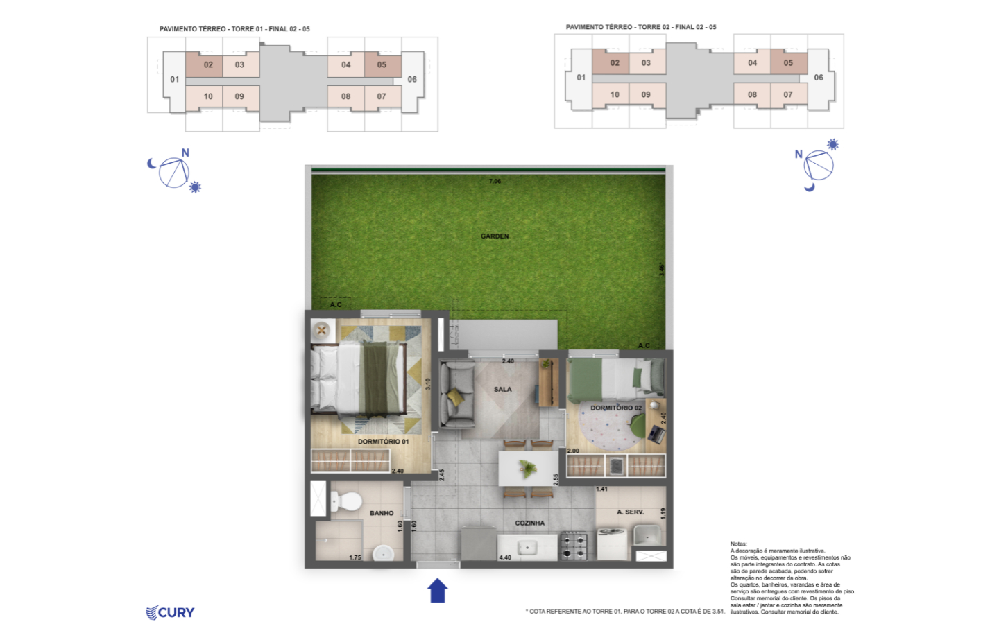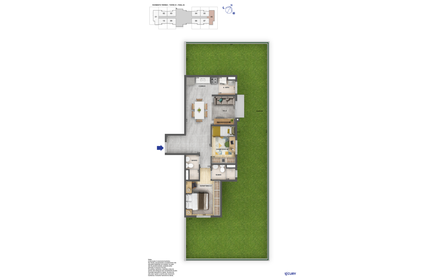• Opções com suíte e garden